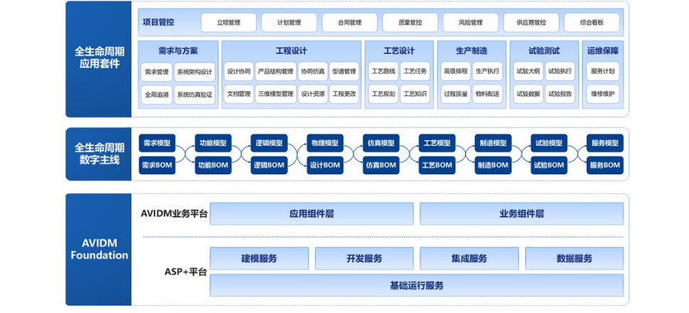 基于神软ASP+平台五大服务能力开发AVIDM业务平台,实现了应用组件层和业务组件层,提供了多种通用及可复用的功能模块,面向多个业务应用进行使用,完成面向工业软件的全生命周期支撑。以神软ASP+平台和AVIDM业务平台为基础构建了AVIDM Foundation底座,统一支撑数字化协同研制系统AVPLM。ASP+面向AVPLM的关键技术研究,突破制约全生命周期数据管理发展的3类13项关键技术,其中超过一半的关键技术在神软ASP+平台支撑能力中实现技术突破,在数据全周期统一建模与模型实例化管理、多组织业务数据隔离与权限体系设计等五项核心关键技术领域,取得了突破,技术研究成果已经应用于神软ASP+平台级服务中。