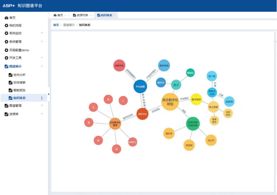 针对用户遇到的多源异构数据割裂、知识关联断层等困难,航天软件推出基于ASP+平台的知识图谱系统,通过构建跨数据库、跨模态的知识网络,实现结构化数据与非结构化文本、图像的语义级融合,解决传统系统“数据多但知识散”的难题。知识图谱系统能够整合来自不同来源、不同格式的数据(如结构化数据库、非结构化文本、图像等),构建统一的知识网络,帮助用户实现数据的互联互通。根据用户项目需求,知识图谱系统依托专业资源库建立知识图谱架构,通过智能化数据学习和查询相关学习资源。系统采用知识抽取、融合及关联推理技术,将分散数据转化为结构化知识网络,不仅支持用户快速检索与分析,一定程度提高了工作效率,还通过关联不同领域的知识,帮助用户发现新的研究方向。同时,系统能够对专业资源进行数据挖掘、分析及可视化展示,为用户构建专业数据体系、便捷式检索框架,为实现大模型Rag奠定坚实基础。