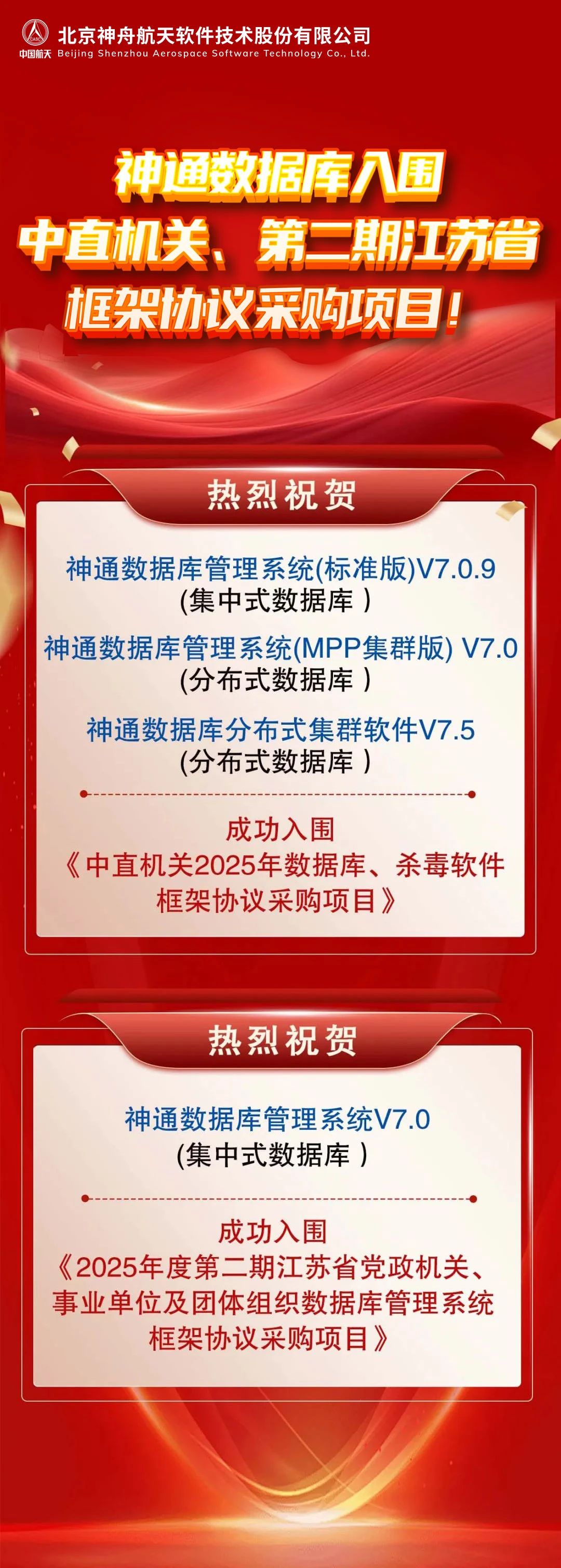 神通数据库入围中直机关、第二期江苏省框架协议采购项目!