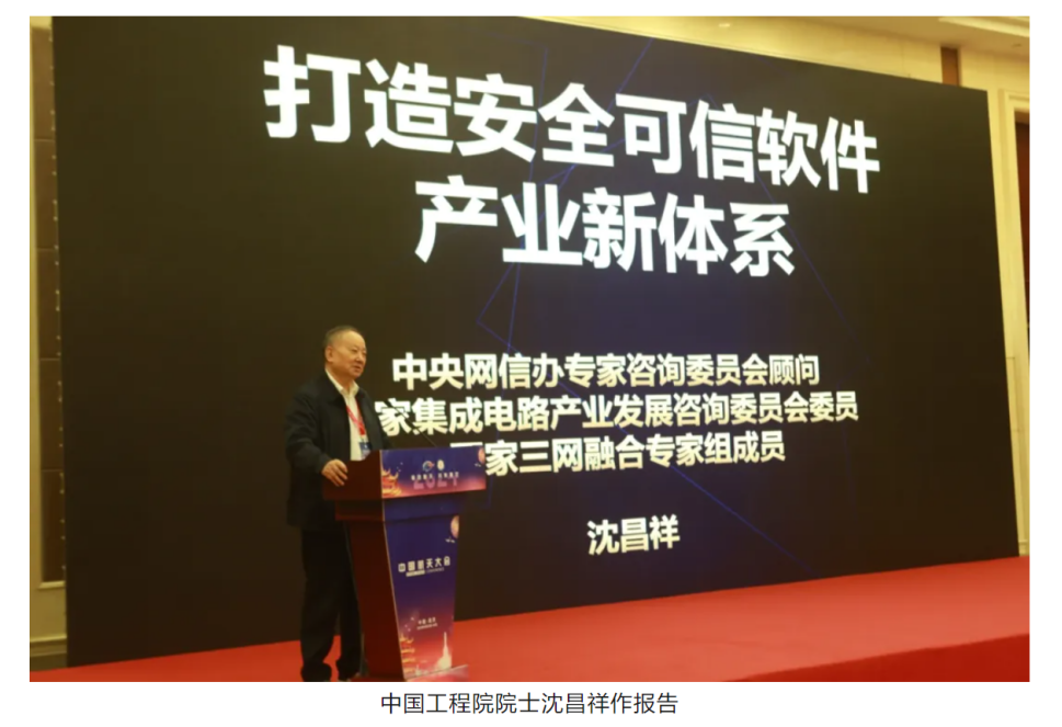 在大会报告环节,沈昌祥院士作题为《打造安全可信软件产业体系》的报告。提出了智能时代网络安全面临的严重威胁,指出了打造自主创新、安全可信的网络安全产业的技术路径。