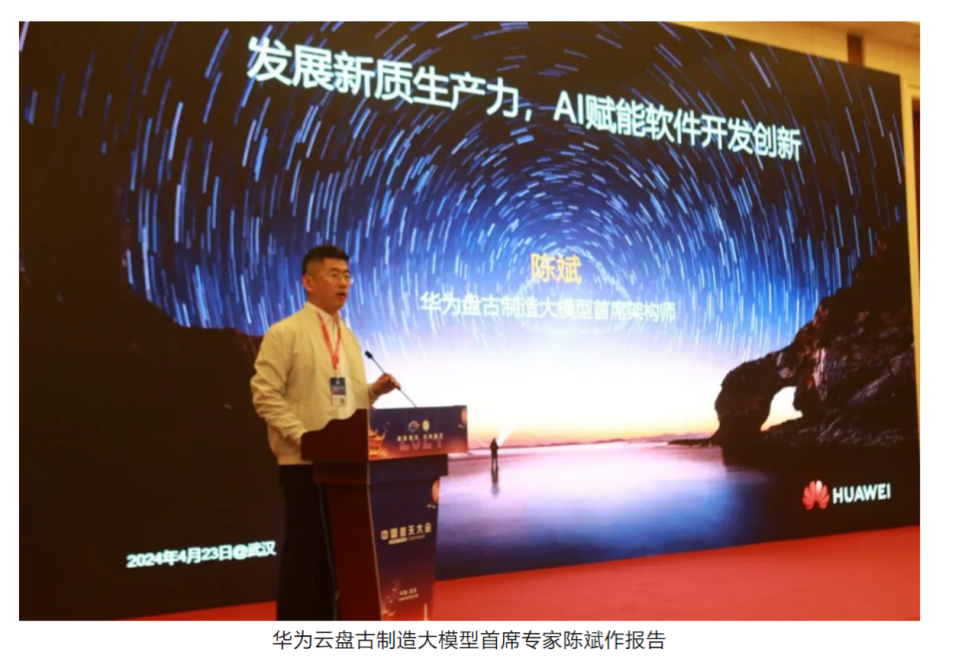 华为云盘古制造大模型首席专家陈斌作题为《发展新质生产力、AI赋能软件开发创新》的报告。回顾了软件工程发展历程,提出当前软件行业面临的瓶颈与挑战以及AI赋能软件开发,研发作业从代码为中心走向模型为中心,从以人为主走向智能自主研发的智能化新阶段。
