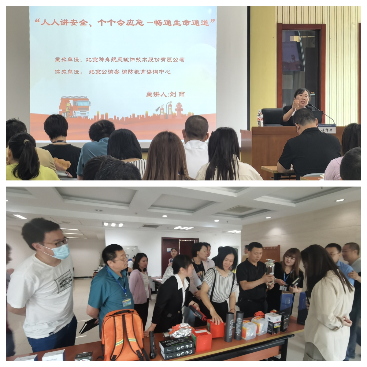北京公消安消防教育咨询中心宣传办主任刘丽为神软公司做了安全生产知识专题讲座,讲解了火灾自防自救知识,介绍了行政办公楼、食堂、档案室等消防重点场所注意事项和防火要求,展示了各类最新消防器材。