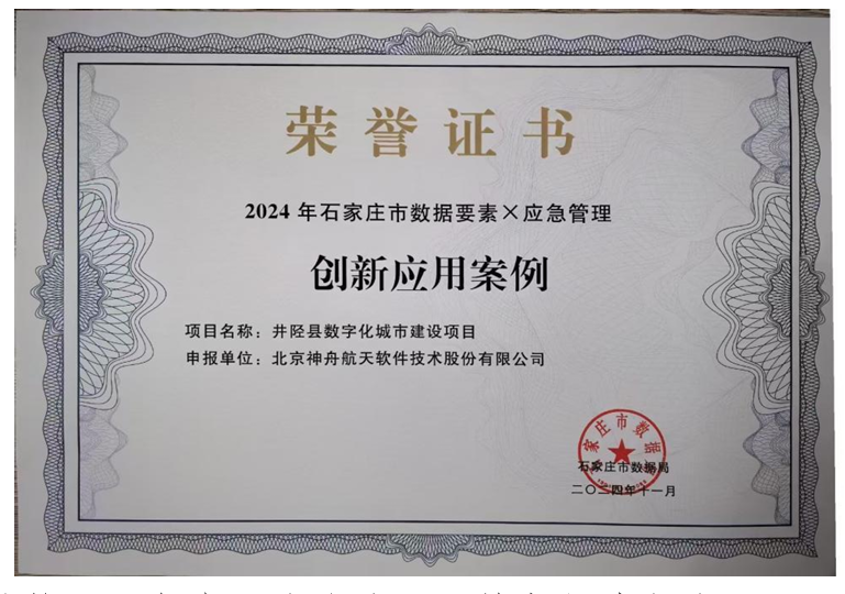 近日,神软公司承建的井陉县数字化城市建设项目,荣获2024年石家庄市数据要素X应急管理创新应用案例奖项。此奖项是依据《“数据要素X”三年行动计划(2024-2026年)》的要求,由国家数据局、中央网信办、工业和信息化部等有关部门联合通过2024年“数据要素X”大赛选拔。