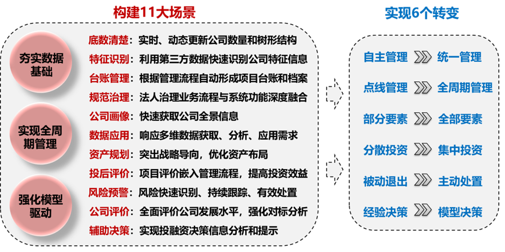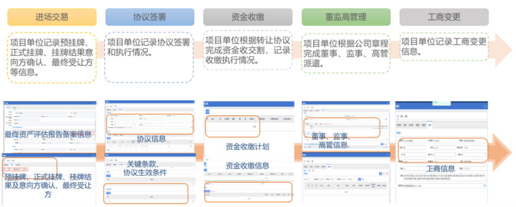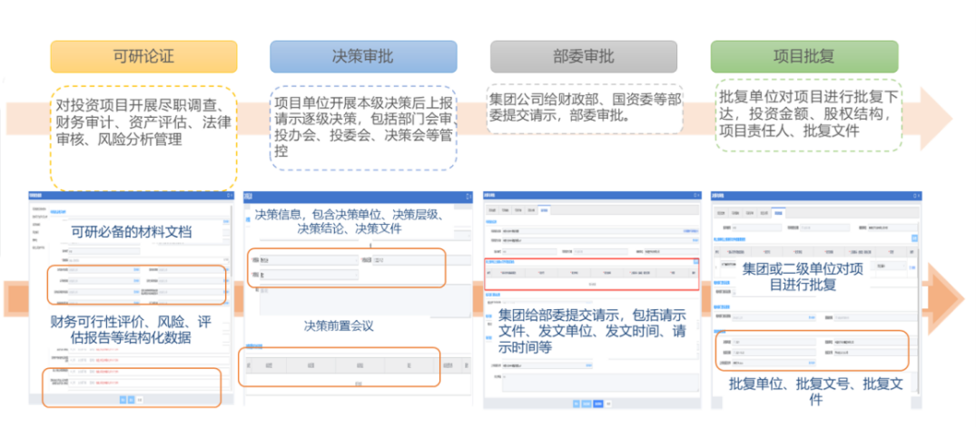 系统业务流程上实现投融资和产权转让项目储备、计划、决策、实施全过程跨级次协同工作,规范投融资行为,控制投融资风险。