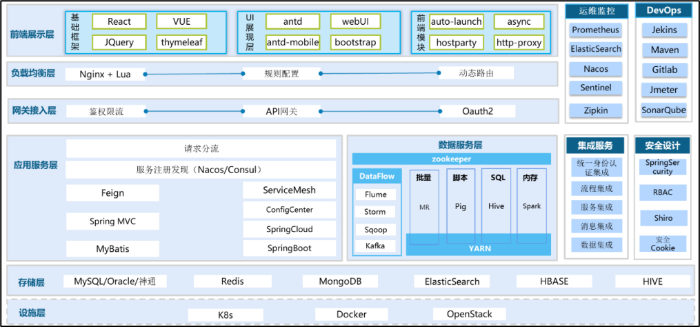 技术架构:基于ASP+微服务架构,融合低代码快速开发、容器云平台等技术手段,实现快速开发、迭代、部署等开发运维一体化。