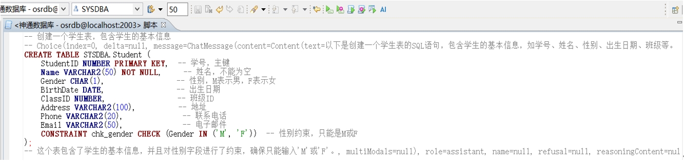 为进一步赋能企业高效利用数据资源,神通数据库的DBStudio工具中引入了DeepSeek能力改写了原有的AI智能补全功能,使用者能够以对话的便捷方式,将自然语言无缝转化为SQL及复杂查询语句,这一功能彻底扭转了以往数据库交互依赖专业编码的局面,升级为“全民对话”的模式,大大降低了企业数据驱动能力的技术门槛。